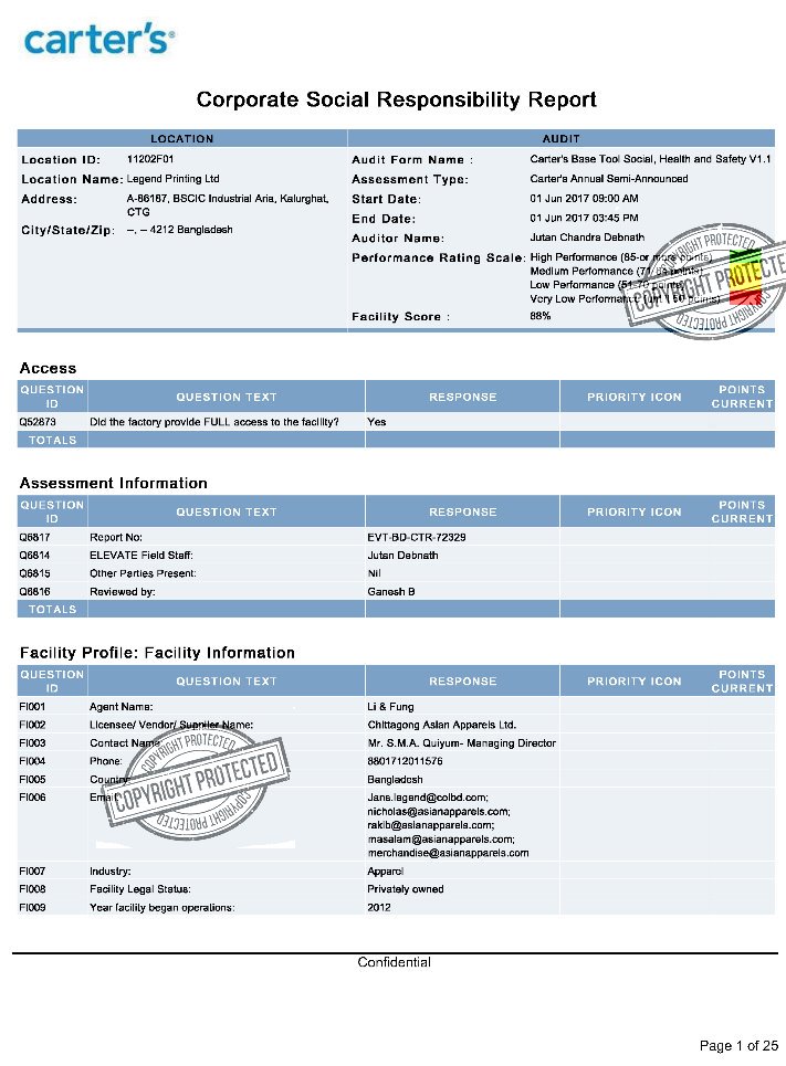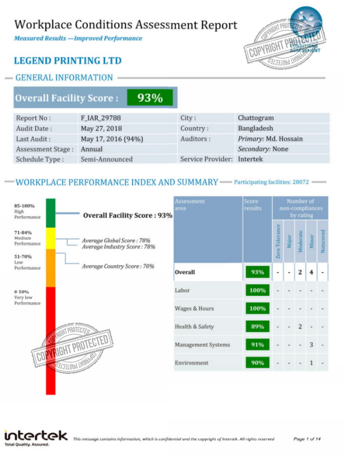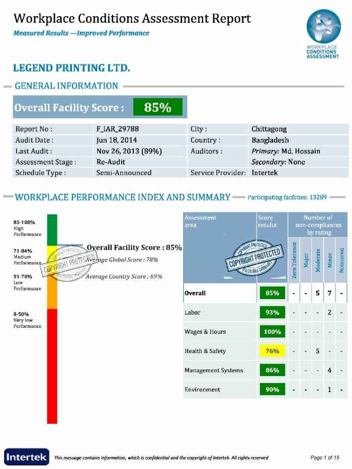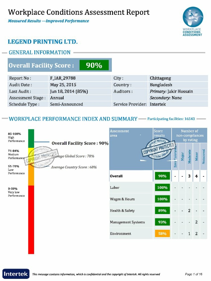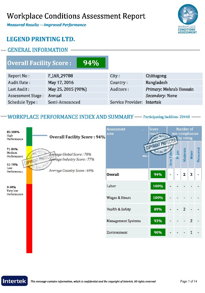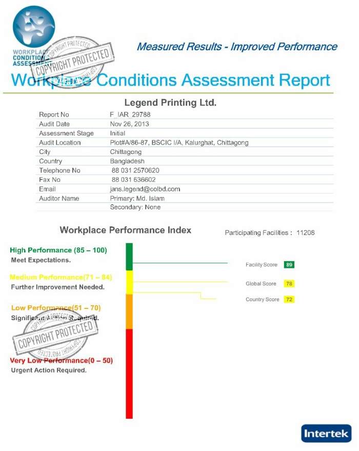 Workplace Conditions Assessment (WCA) FOR CARTER’S BUYER (LEGEND PRINTING LTD)