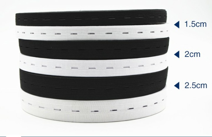 (B) Button Hole Elastic, Description : DTM, White, Black & Multi Colour Button Hole Elastic and all are AZO free